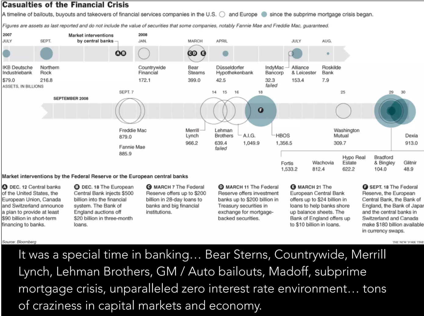 Business and tech operators that come out of this uncertain road ahead will have serious street cred in the next fundraising cycle. My first job out of college was at a commercial bank that had over invested in real estate deals from 2005-2007 and experienced massive growth. It all came crashing down in late 2007 along with the rest of the financial markets. And if it wasn't for a $135M capital infusion from the federal government, a 55-year old institution would have collapsed.
