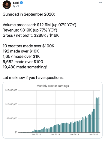 Only 0.05% of the creators on Gumroad earn over $100K/yr.